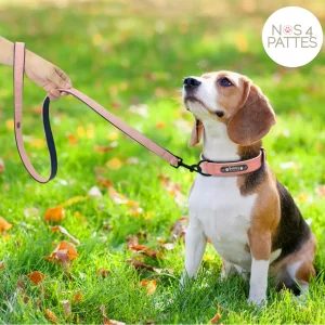 Collier et laisse personnalisable avec nom et téléphone en simili cuir