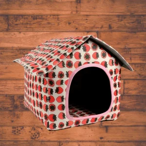 Maison Rouge Fraise pour Chien – Niche Intérieure Confortable, Lavable et Pliable
