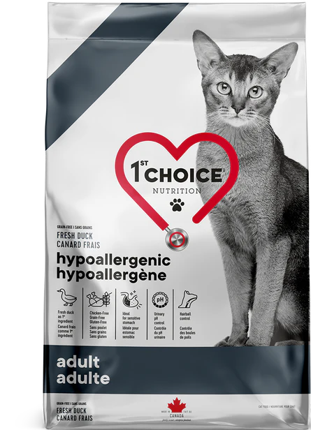 1sLa formule 1st Choice HYPOALLERGÈNE est conçue pour faciliter la digestion des chats qui ont l’estomac sensible. Composée d’éléments nutritifs choisis et finement dosés, cette délicieuse formule au canard est complètement exempte de grains. Elle convient donc parfaitement aux chats qui sont allergiques au poulet ou qui souffrent d’intolérances aux grains. Elle a été spécifiquement élaborée à partir de protéines faciles à digérer et reconnues pour être bien tolérées. C’est la solution idéale pour les chats qui ont des sensibilités alimentaires.