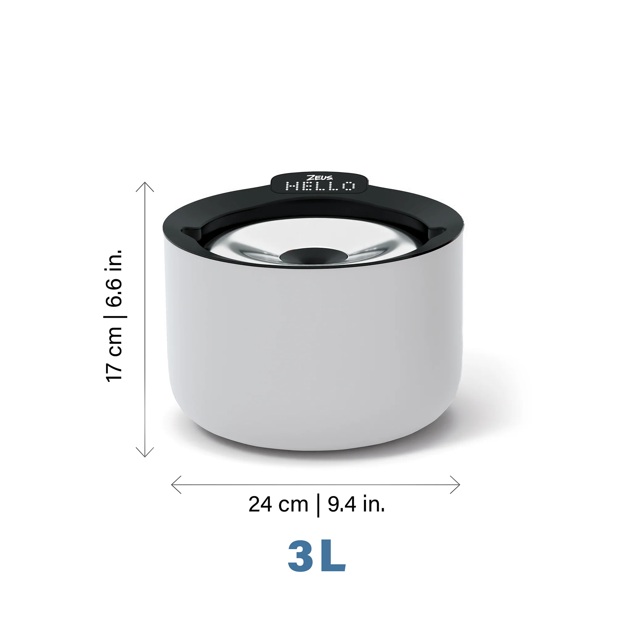 L’abreuvoir Zeus Oasis PLUS gardera votre chien bien hydraté et donnera fière allure à votre espace de vie. Ce n’est un secret pour personne que les bols à eau des chiens sont un lieu propice à la prolifération de micro-organismes et de microbes. Grâce aux différentes méthodes de purification de l’eau de l’abreuvoir Zeus Oasis PLUS, lesquelles aident à éliminer le chlore de l’eau de robinet, l’eau de votre chien goûte bon. Contrairement aux bols, l’eau dans le réservoir de l’abreuvoir ne nécessite d’être rafraîchie que tous les quelques jours, ce qui sauve temps et efforts.