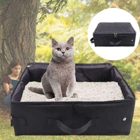 Voyagez sereinement avec votre minou grâce au bac à litière portable, pliable et ultra-pratique 👌