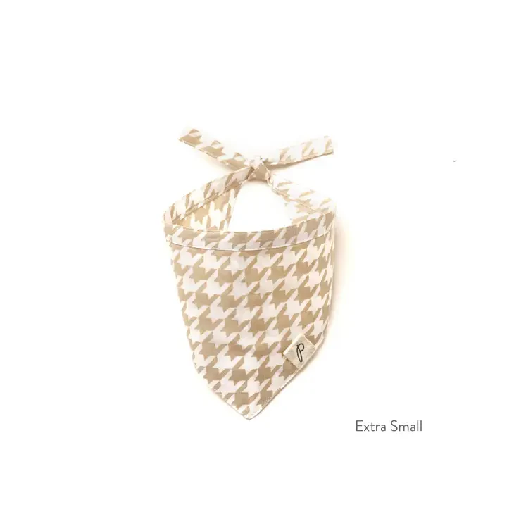 Le bandana pour chien Dune offre un motif pied-de-poule beige élégant. Avec sa forme triangulaire, il offre à ton chien un style sur mesure !