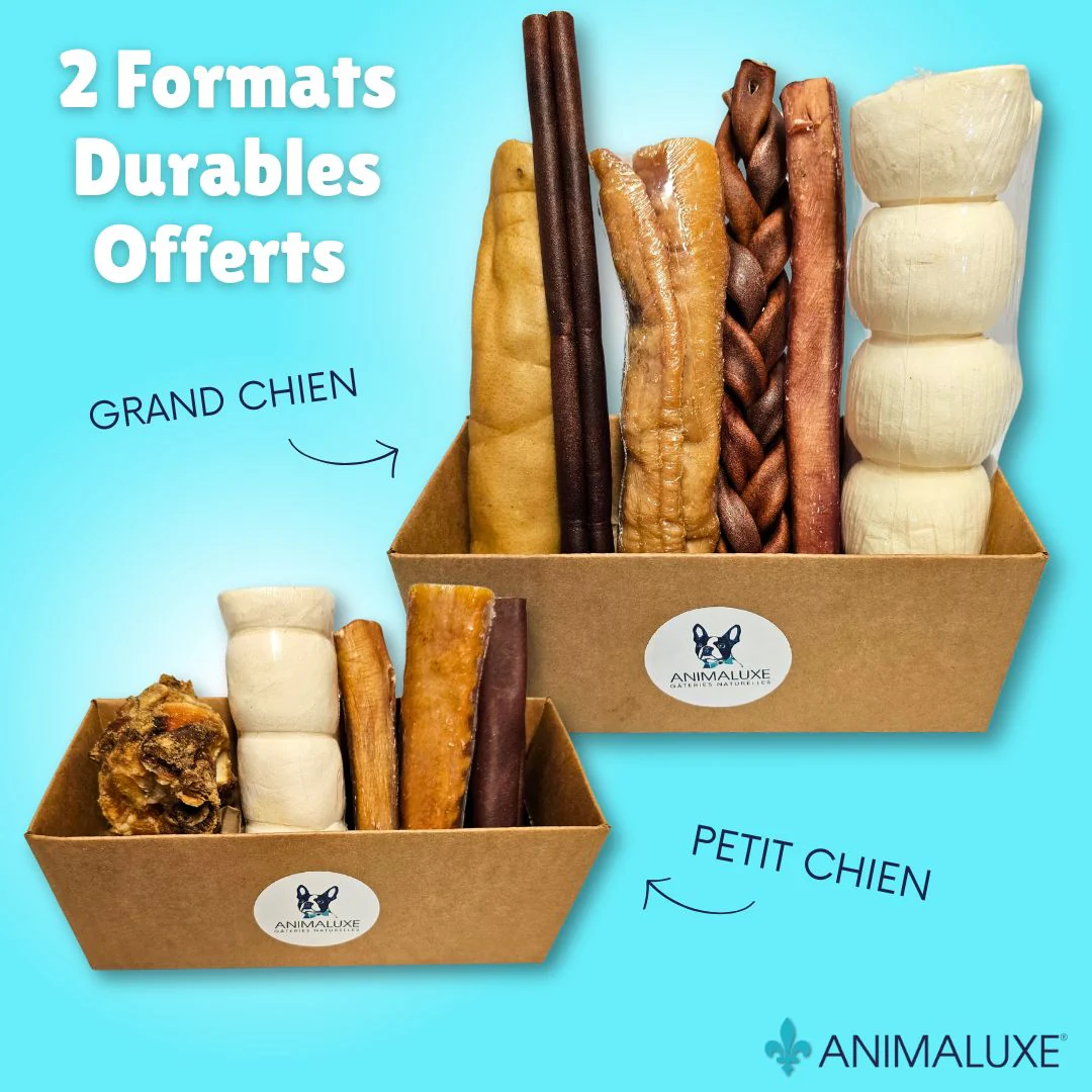 T’as un chien qui démolit tout en 3 secondes ? On a ce qu’il lui faut ! Notre boîte Les Durs à Mâcher, c’est 10 à 12 gâteries 100 % naturelles, bien costaudes, faites pour les mâchoires puissantes. Des textures qui stimulent, des heures de plaisir à gruger, et en bonus : ça aide à garder les dents et les gencives en pleine forme. Parfaite pour défouler ton chien de façon naturelle et satisfaisante… et t’éviter un coin de meuble en moins 😅