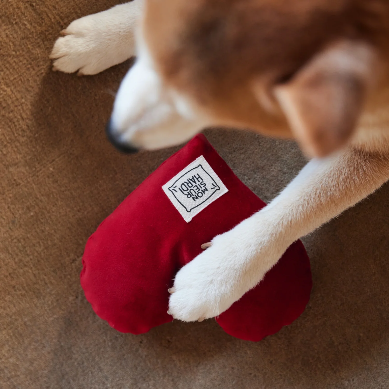 Le cœur est un jouet et un oreiller. Rien de plus mignon que de voir votre chien vous accueillir avec son petit coeur ou s’endormir dessus.