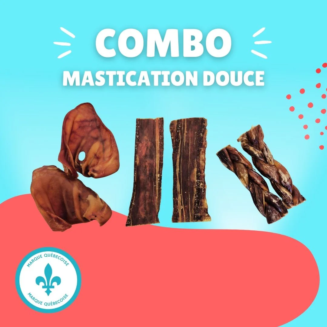 Le Combo Mastication Douce est une sélection de gâteries 100 % naturelles, parfaite pour offrir à ton chien une variété de saveurs authentiques et saines. Chaque produit est choisi auprès de fermes locales pour garantir qualité et fraîcheur, tout en soutenant l’économie d’ici 🐶💙.