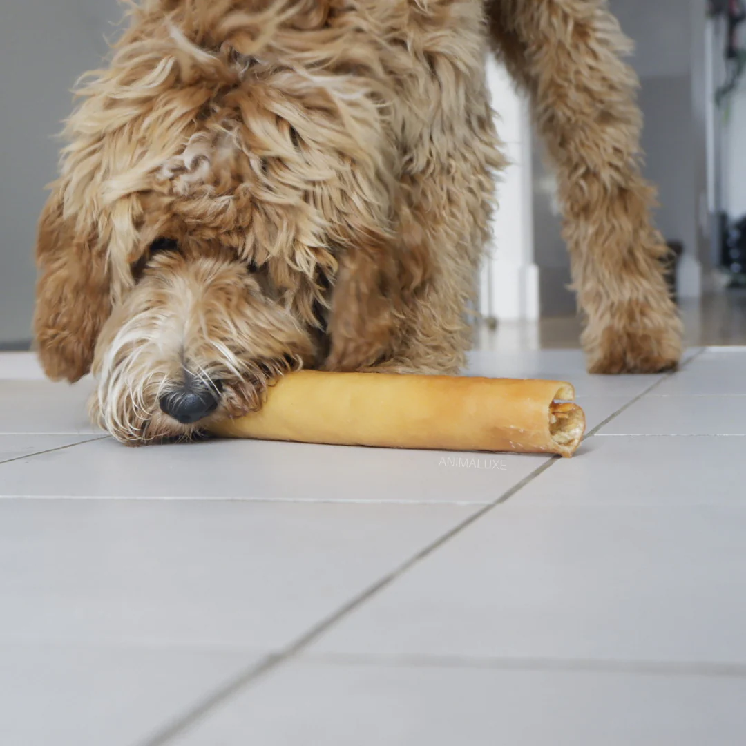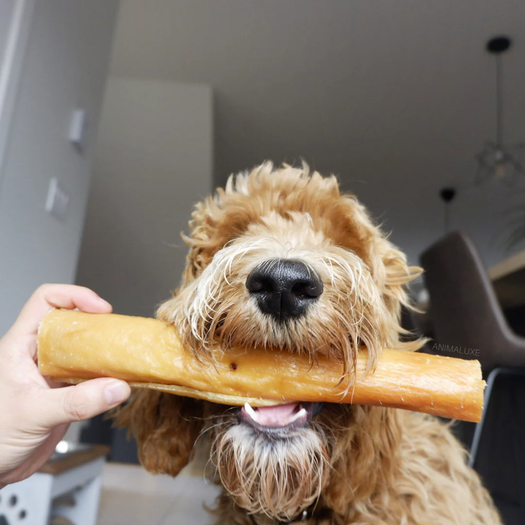 Nos bâtons de porc sont une excellente alternative aux gâteries de cuir ! Une savoureuse gâterie à mâcher 100 % naturelle, idéale pour occuper ton chien tout en respectant ses besoins de mastication 🐶💙.