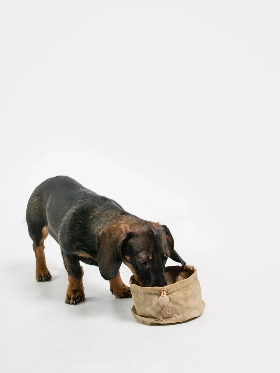 Cette gamelle beige élégante est imperméable et se plie facilement. Idéale pour te suivre partout dans vos déplacements avec ton chien !