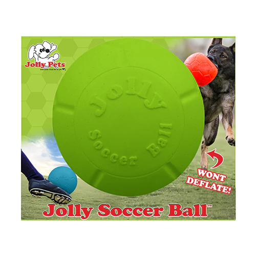 Parfait pour les chiens de toutes tailles ! Ce ballon de football à l’épreuve des chiens vous permet de garder les yeux sur le véritable objectif : s’amuser avec votre chiot ! Fabriqué en matériau JollyFlex™, ce ballon peut être percé et ne se dégonfle pas. Même si votre chien y fait un trou, ce jouet gardera sa forme.
