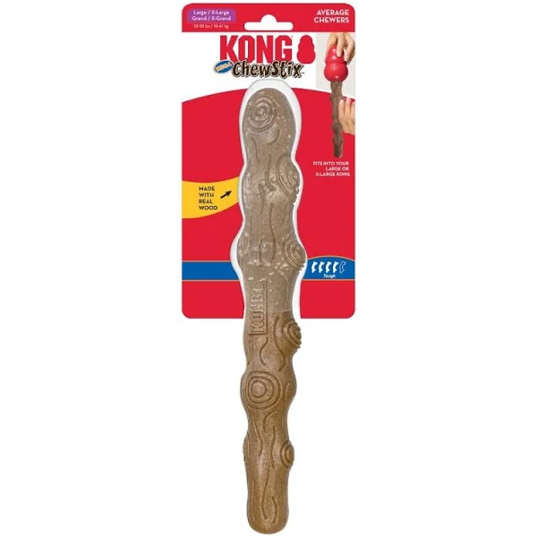 ChewStix Tough Mega Stick est un produit à mâcher extra long et durable pour une option plus sûre que les bâtons pour les chiens qui rêvent de branches. Le contenu en bois véritable satisfait les instincts naturels de mastication ; arôme séduisant et rainures pour nettoyer les dents. S’intègre dans KONG Classic pour créer une expérience de mastication prolongée avec une base KONG rebondissante qui lance des épisodes de plaisir à rapporter entre une mastication agréable.