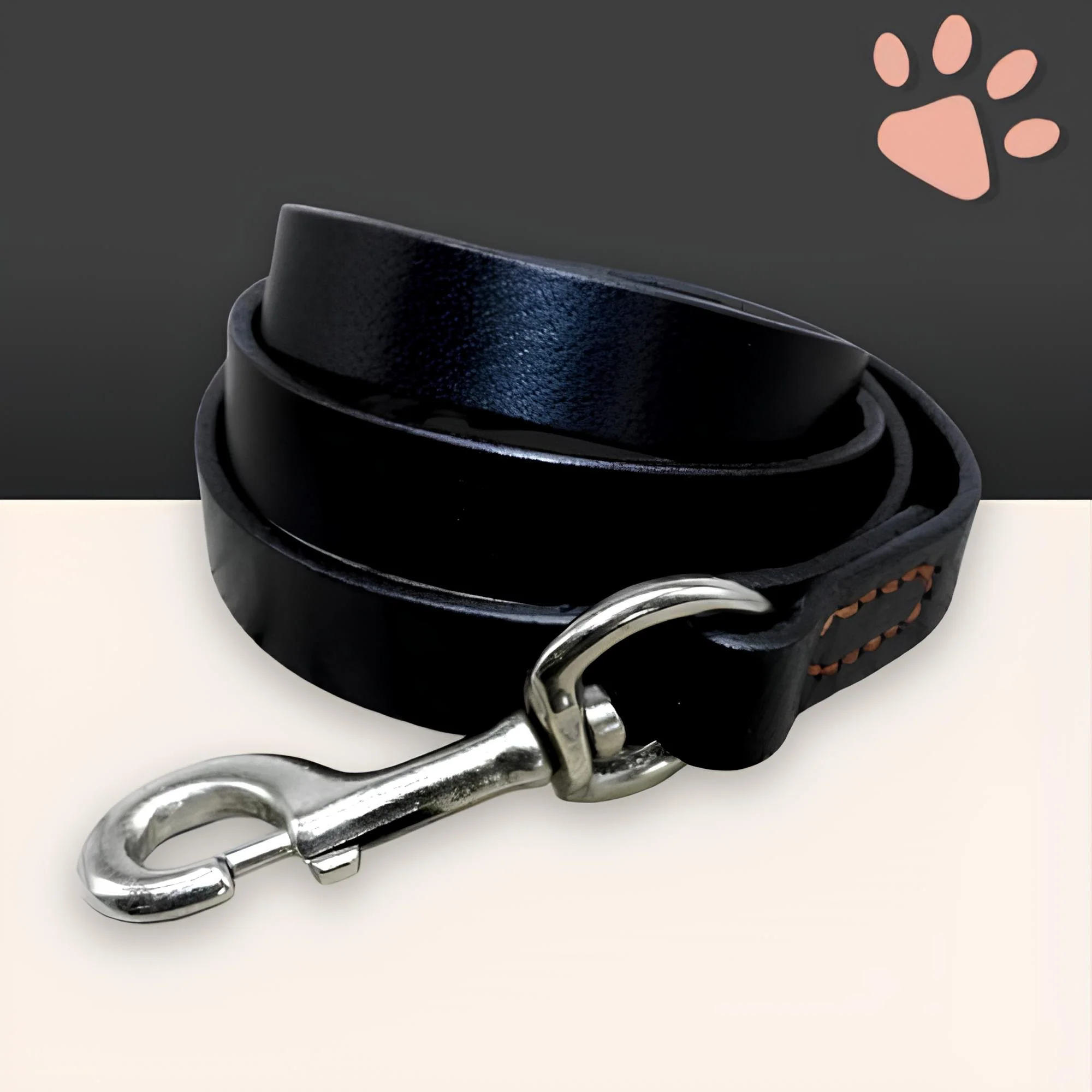 Fabriquée en cuir véritable épais et équipée d’un crochet argenté robuste, cette laisse combine sécurité et élégance pour toutes vos sorties.