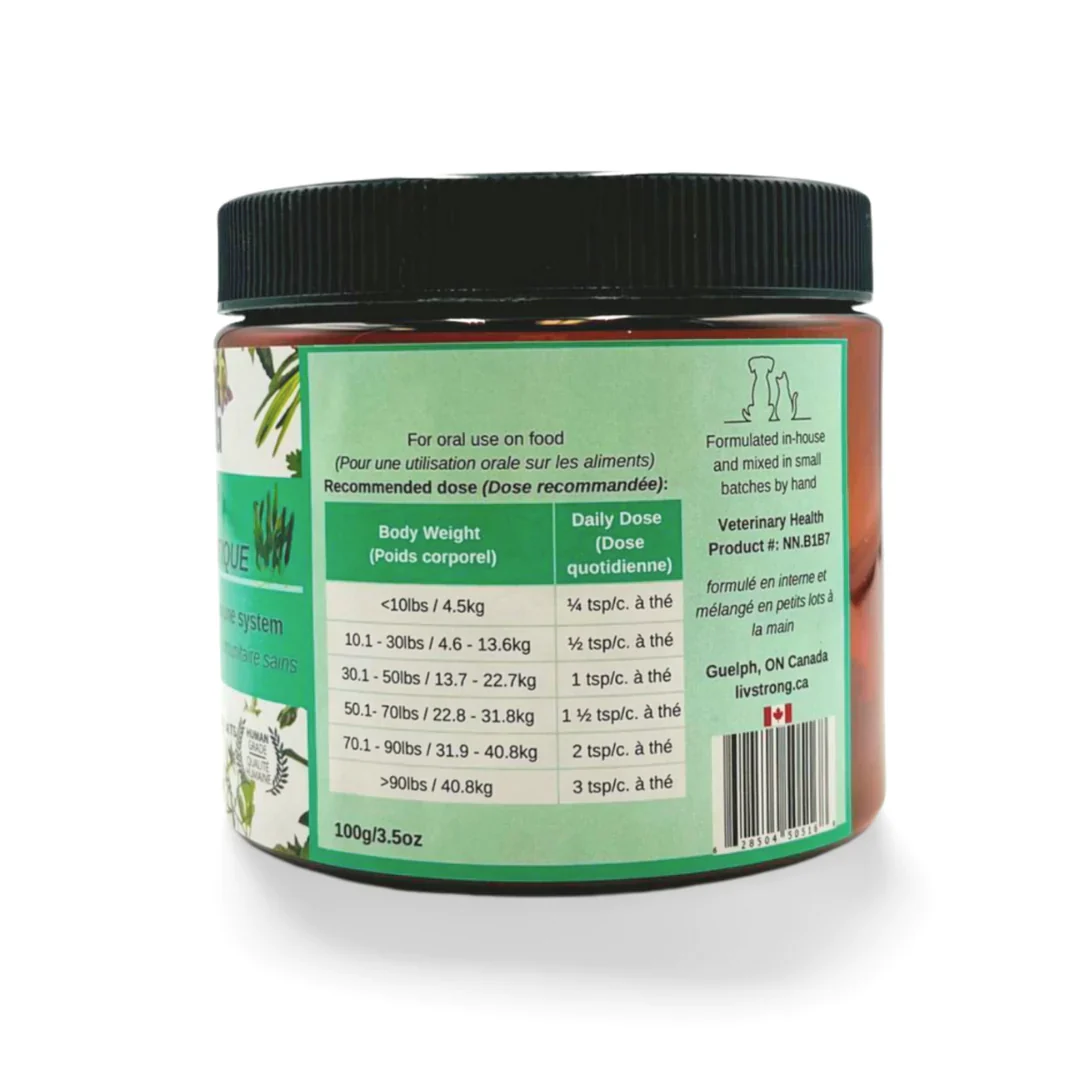 Peut aider avec le soutien immunitaire, la fonction hépatique, et la peau et le pelage sains
