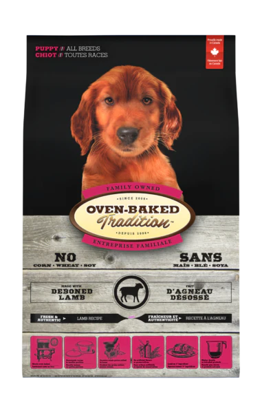 Notre nourriture pour chiot de toutes races est préparée avec de l’agneau, fruits et légumes frais.