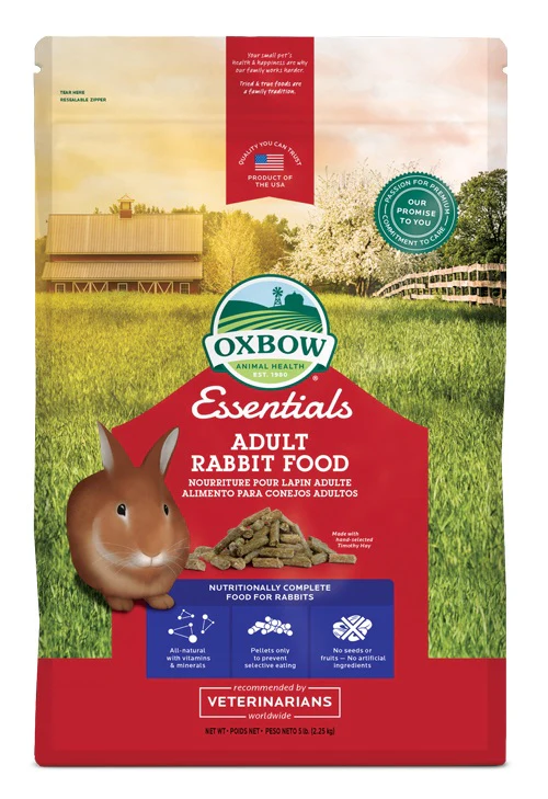 Oxbow’s Essentials – La nourriture pour Lapin Adulte est formulé pour répondre aux besoins nutritionnels spécifiques des lapins adultes et les aider à prospérer. Cette nourriture complète et équilibrée pour lapin adulte contient du foin de fléole des prés pour une digestion saine et tous les ingrédients sains et les nutriments essentiels nécessaires pour soutenir la fonction et la performance quotidiennes.