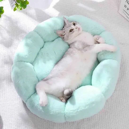 Nous avons créé ce panier chat en forme de fleur parce que en tant qu‘amoureux des félins, nous comprenons l’importance de leur offrir un environnement propice à leur bien-être !