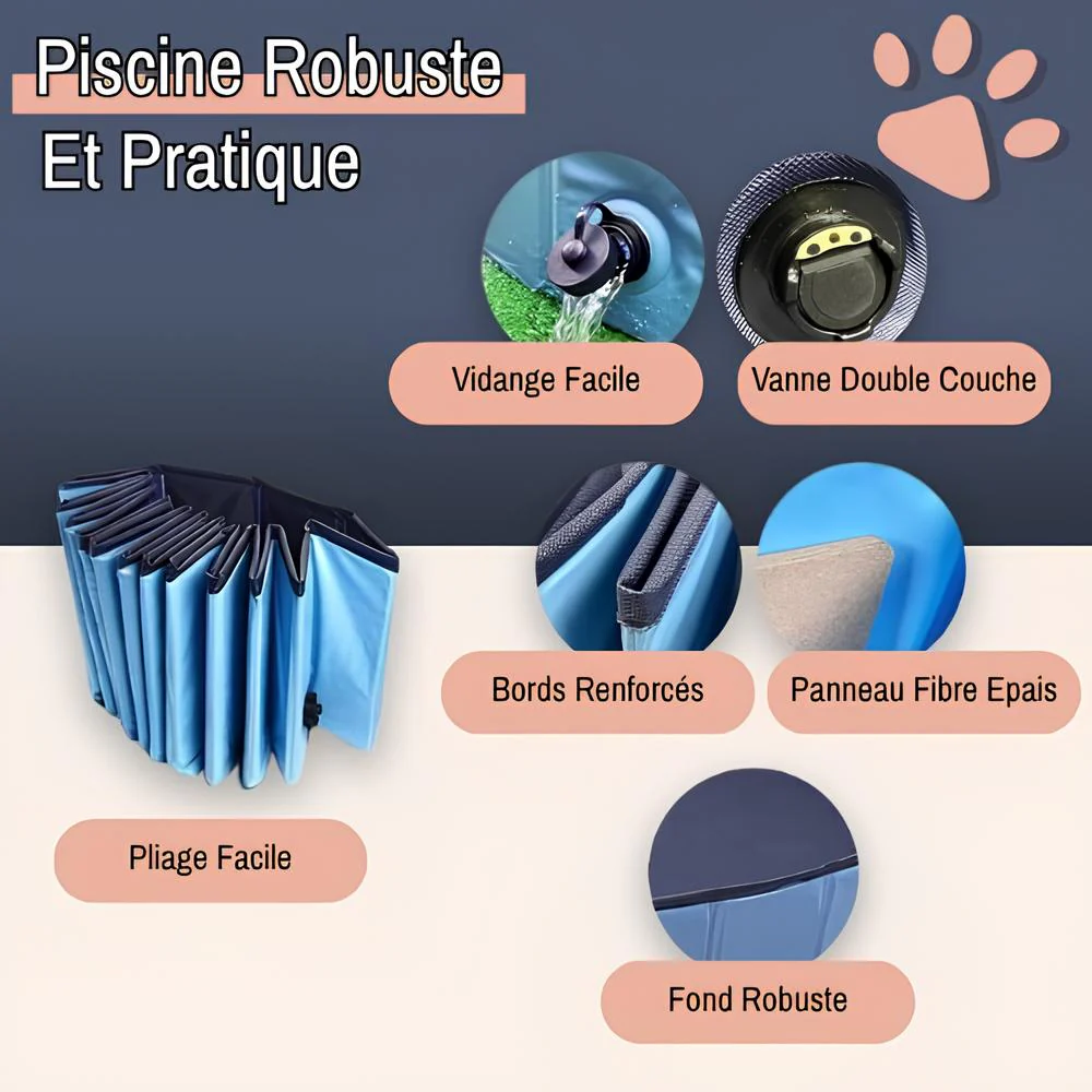 Les chiens ne transpirent pas comme nous : ils se rafraîchissent principalement en haletant ou par leurs coussinets. Grâce à la piscine pour chien pliable JuJuPoolFold™, vous leur offrez un espace sécurisé pour se baigner et se détendre.