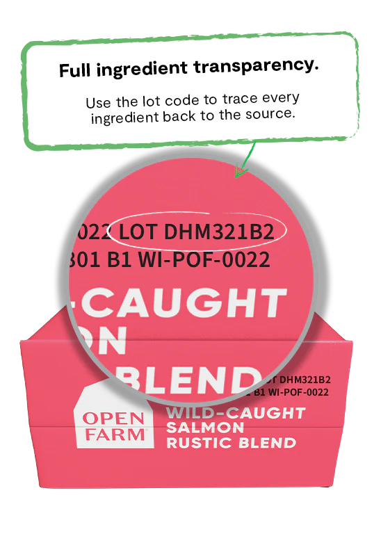 La nourriture pour chats Open Farm Wild-Caught Salmon Rustic Blend est formulée pour répondre aux niveaux nutritionnels établis par les profils d’éléments nutritifs de l’AAFCO pour l’entretien.