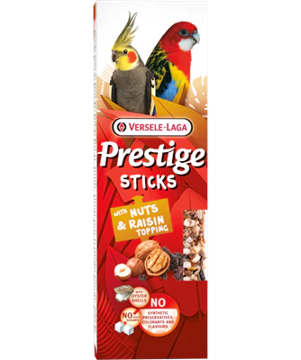 2 bâtonnets de graines cuits extra larges, aux noix et garniture de raisins pour grandes perruches et perroquets