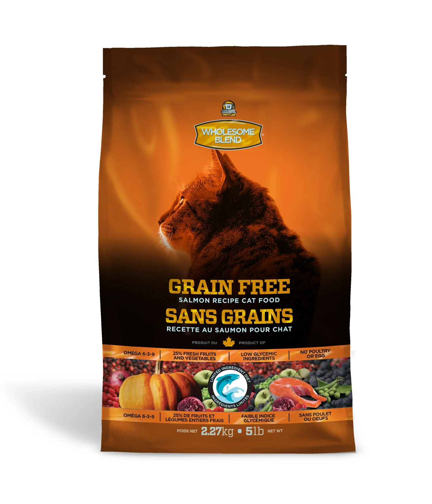 Saumon désossé, farine de saumon, farine de poisson de menhaden, pois, amidon de pois, huile de canola (conservée avec un mélange de tocophérols), luzerne séchée au soleil, farine de poisson à chair blanche (corégone), arôme naturel, huile de hareng, huile d’olive (conservée avec un mélange de tocophérols), citrouille, carottes, pommes, pulpe de tomate, sulfate de calcium, tomates, chlorure de choline, canneberges, épinards, graine de lin, racine de chicorée séchée, extrait de levure (source de mannane-oligosaccharides), vitamines (supplément de vitamine E, niacine, L-ascorbyle-2-polyphosphate (source de vitamine C), bêta-carotène, supplément de vitamine A, mononitrate de thiamine, pantothénate D-calcium, supplément de vitamine k, chlorhydrate de pyridoxine, supplément de riboflavine, biotine, supplément de vitamine B12, supplément de vitamine D3, acide folique), minéraux (sulfate de fer, sulfate de zinc, sulfate de cuivre, sulfate de manganèse, sélénite de sodium, iodate de calcium, protéinate de zinc, protéinate de cuivre, protéinate de manganèse, protéinate de fer), bleuets, framboises, varech, taurine, extrait de yucca schidigera, grenades, DL-méthionine, L-carnitine, anis, casse, thym, camomille, raifort, genévrier, produit de fermentation de Bacillus subtilis, produit de fermentation de Bacillus licheniformis, produit de fermentation Lactobacillus acidophilus, produit de fermentation de Lactobacillus casei, produit de fermentation de Bifidobacterium bifidum, produit de fermentation de Enterococcus faecium, produit de fermentation de Aspergillus oryzae.