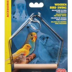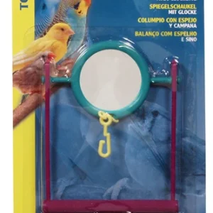 Perchoir d’atterrissage Living World avec auget à graines, miroir et perles